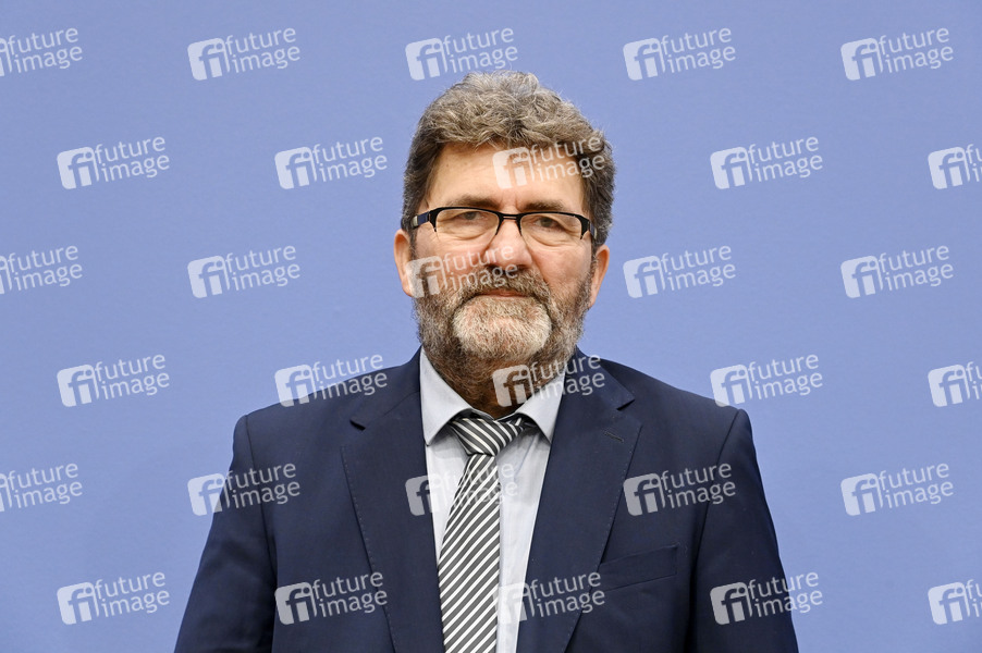 Michael Windfuhr bei der Bundespressekonferenz zum 9. Menschenrechtsbericht zur Entwicklung der Situation der Menschenrechte in Deutschland: Asyl/Migration, Wohnungslosigkeit, Rohstoffabkommen im Haus der Bundespressekonferenz. Berlin, 09.12.2024