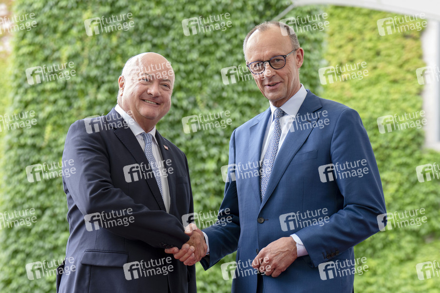 Christian Stocker und Friedrich Merz beim Empfang des österreichischen Bundeskanzlers mit militärischen Ehren zu einem gemeinsamen Gespräch mit anschließendem Pressestatement im Bundeskanzleramt. Berlin, 27.06.2025