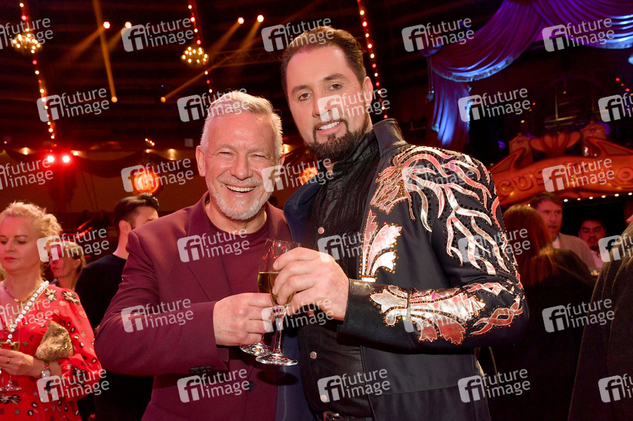 Otto Steiner und Martin Lacey jr. bei der Premiere der Circus Krone Winterspielzeit mit dem Programm 'Ich.Du.Wir.Krone' im Circus Krone Bau. München, 25.12.2025