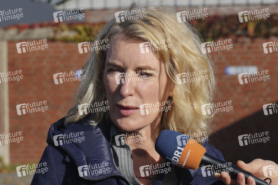 Maria Furtwängler beim Fototermin am Set des ARD-Krimis 'Tatort - Königin' (AT) bei der Tankstelle an der Freiwilligen Feuerwehr. Jork, 22.10.2024