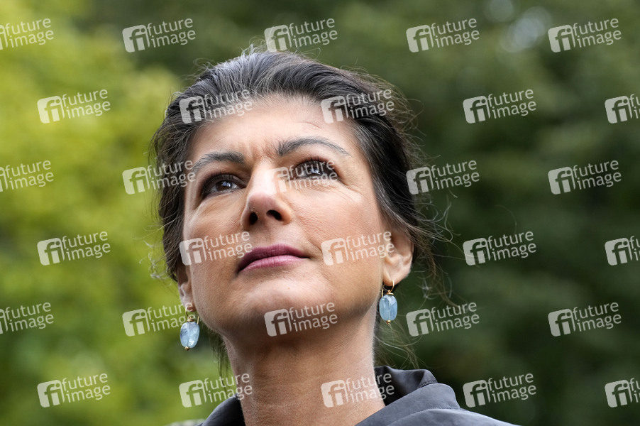 Sahra Wagenknecht bei der Friedensdemonstration unter dem Motto 'Nein zu Krieg und Hochrüstung! Ja zu Frieden und internationaler Solidarität' vor der Siedessäule am Großen Stern. Berlin, 03.10.2024