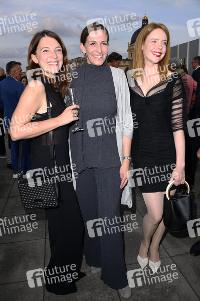 Iris-Mareike Steen, Ulrike Frank und Olivia Marei beim Eröffnungsempfang der UFA Filmnächte 2025 auf der Dachterrasse der Bertelsmann Repräsentanz. Berlin, 27.08.2025