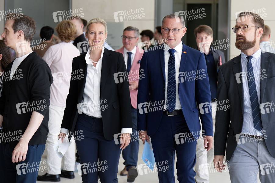 Alice Weidel und Tino Chrupalla bei der Fraktionssitzung der AfD-Bundestagsfraktion im Reichstagsgebäude. Berlin, 25.06.2024