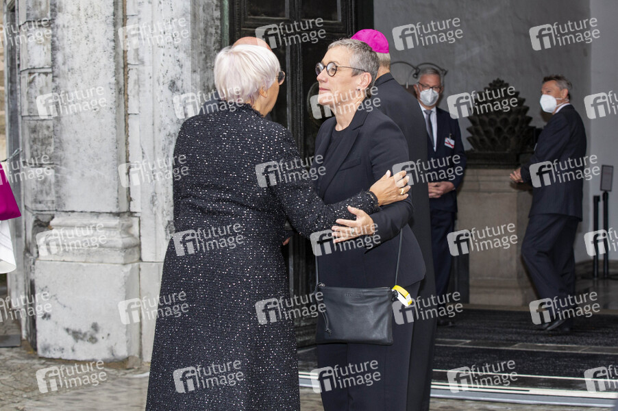 Claudia Roth und Sibylle Keupen beim ökumenischen Gottesdienst für die Opfer der Flutkatastrophe im Hohen Dom zu Aachen. Aachen, 28.08.2021