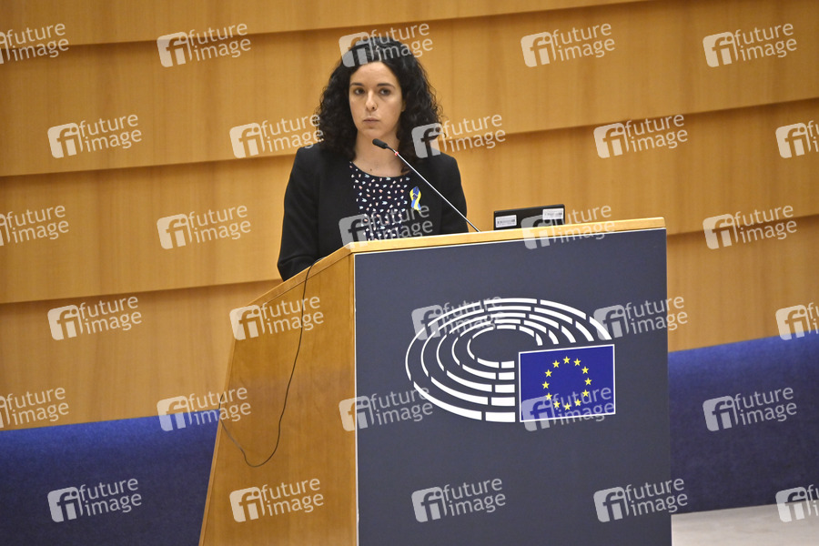 Rede, außerordentliche Sitzung, Sondersitzung, Politik, Europaparlament, EU-Parlament, EP, Parlament der Europäischen Union, Parlamentum Europaeum, MdEP, Mitglied des Europäischen Parlaments, Krieg, Angriffskrieg, Einmarsch, Europapolitik, internationale Krise, internationale Politik, internationales Recht, Konflikt, Krieg, Kriegsbeginn, Kriegsverbrechen, Krise, Militäroffensive, Militärschlag, Sanktionen, Solidarität, Solidaritätsbekundung, Ukraine, Ukrainekonflikt, Ukraine-Konflikt, Ukrainekrise, Ukraine-Russland-Krise, Politikerin, Frankreich, La France insoumise, FI, Co-Vorsitzende der Fraktion Die Linke, GUE/NGL