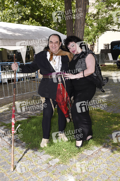 Willy Michl mit Ehefrau Cora beim Pressetermin zum Konzert von Willy Michl zu seinem 70. Geburtstag im Rahmen des Eulenspiegel Flying Circus im Innenhof des Deutschen Museums. München, 02.07.2020