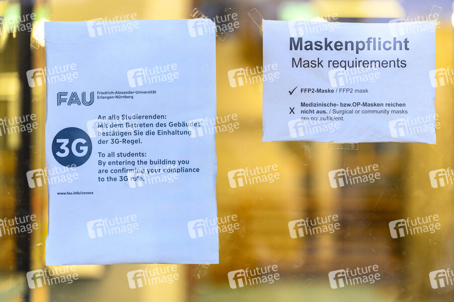 FAU Erlangen-Nürnberg, Universität, Studium, Corona, 2G-Regel, Präsenzveranstaltung, Schutzmaske, Schutzmasken, Atemschutzmasken, Mundschutz, Mund-Schutz, Mundschutzpflicht, Mundschutz-Pflicht, Mund-Nase-Schutz, Mund-Nasen-Schutz, MNS, Ausbreitung, Maskenzwang, Maskenpflicht, Infektionsgefahr der Öffentlichkeit, Eindämmung, Seucheneindämmung, anstecken, infizieren, Vorbeugung, Prävention, schützen, Einschränkung, Verzicht, Seuchenschutz, Corona-Schutz, Virus, Viren, Corona, Coronavirus, Coronaviren, Corona-Virus, Corona-Viren, Ansteckung, Ansteckungsgefahr, Epidemie, Pandemie, Infektion, Infektionen, Corona-Maßnahmen, Symbolfoto, Symbolbild