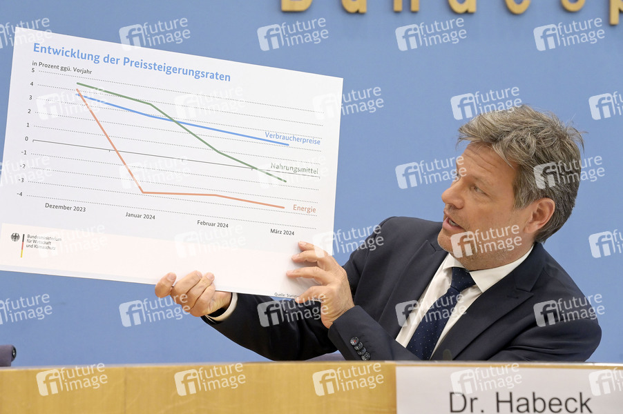 Robert Habeck bei der Bundespressekonferenz Frühjahresprojektion der Bundesregierung 2024 im Haus der Bundespressekonferenz. Berlin, 24.04.2024