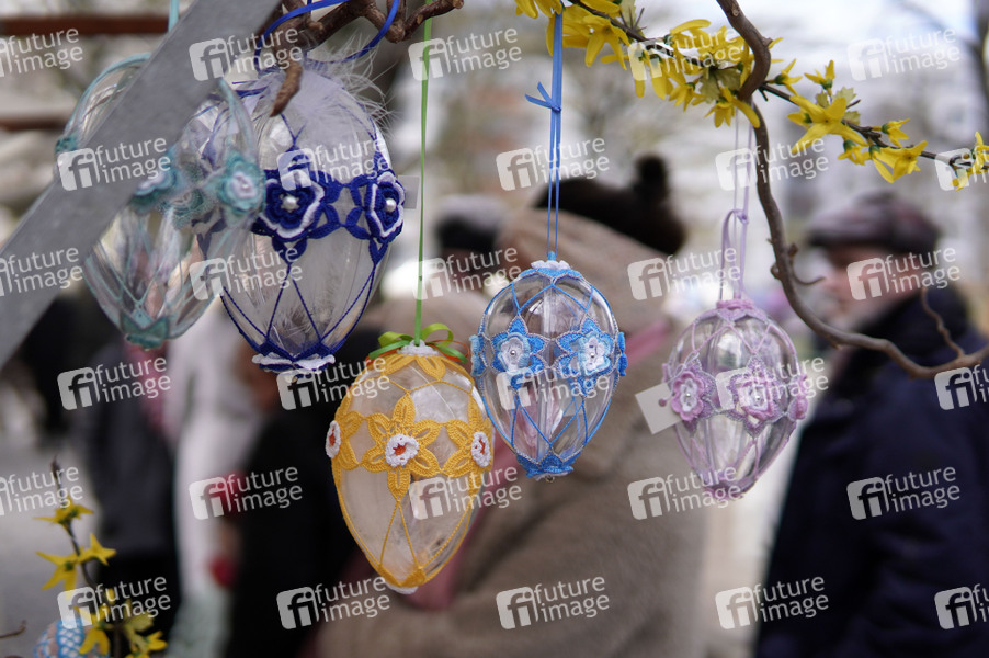 Gläserne Ostereier auf einem kunsthandwerklicher Ostermarkt
