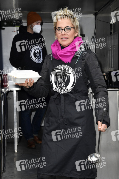 Inka Bause verteilt Essen und Geschenke aus dem Food Truck an Obdachlose und Bedürftige. Berlin, 16.12.2020
