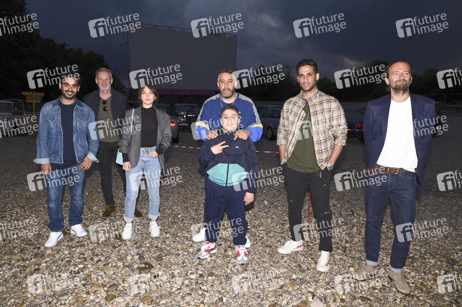 Tanju Bilir, Gast, Emma Drogunova, Kida Khodr Ramadan mit Sohn Momo; Karim Günes und Gast bei der Weltpremiere des TV-Films 'In Berlin wächst kein Orangenbaum' beim Filmfest München Pop-Up im PopUp Autokino. München, 15.07.2020