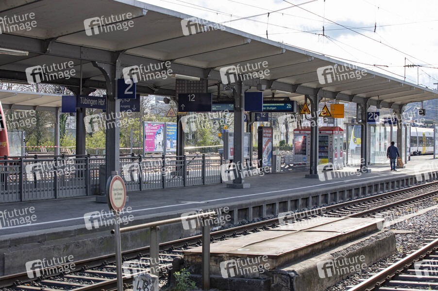 Tübingen Hauptbahnhof ist der größte Bahnhof der Universitätsstadt Tübingen und ein Nahverkehrsknotenpunkt in Baden-Württemberg. Tübingen, 13.04.2021