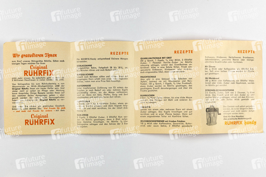 Bedienungsanleitung und Rezepte für den Original Rührfix Küchengerät von Heimag aus den 1950er Jahren. (Symboltofoto, Themenfoto)