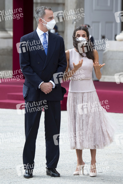 König Felipe VI. von Spanien und Königin Letizia von Spanien beim Empfang des südkoreanischen Präsidenten mit militärischen Ehren im Palacio Real. Madrid, 15.06.2021