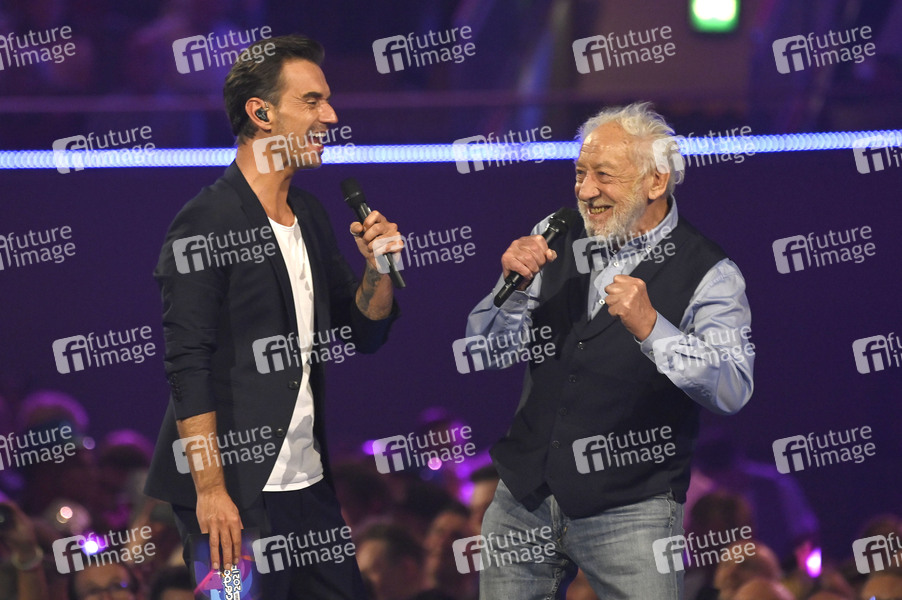 Florian Silbereisen und Dieter Hallervorden in der TV Show 'Schlagerbooom 2021 - Alles funkelt! Alles glitzert!' in der Dortmunder Westfalenhalle. Dortmund, 23.10.2021