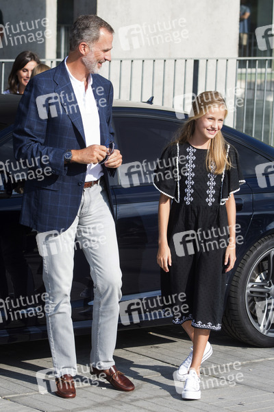 König Felipe VI. von Spanien und Prinzessin Leonor von Spanien besuchen Juan Carlos nach seiner Herzoperation im Hospital Universitario Quirónsalud Madrid. Pozuelo de Alarcón, 26.08.2019