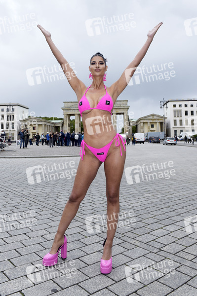 Micaela Schäfer beim Fototermin zur Erotikmesse Venus Berlin 2025 am Brandenburger Tor. Berlin, 15.09.2025