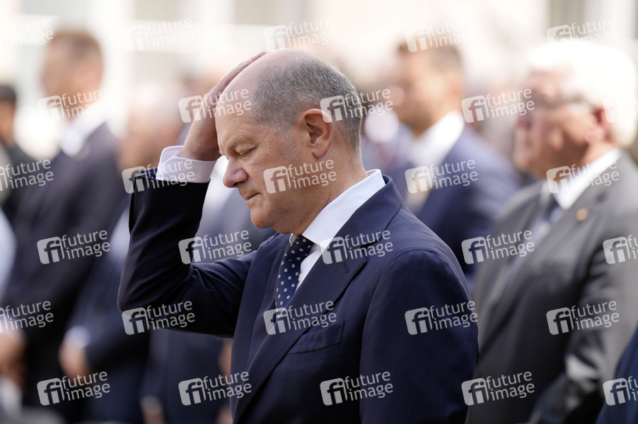 Olaf Scholz bei der Gedenkveranstaltung zum 80. Jahrestag des Aufstands gegen Nationalsozialistische Gewaltherrschaft mit Kranzniederlegung auf dem Ehrenhof des Bendlerblocks.Berlin, 20.07.2024