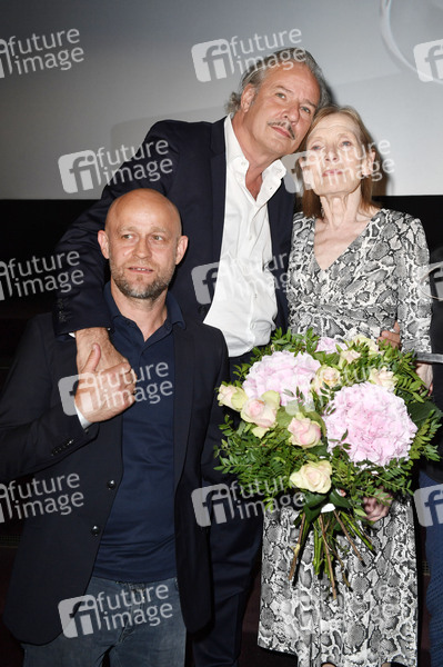 Jürgen Vogel, Leander Haußmann und Margit Carstensen bei der Verleihung des Götz George Preises 2019 in der Astor Film Lounge. Berlin, 19.08.2019