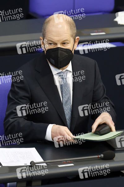 Olaf Scholz in der 210. Sitzung des Deutschen Bundestages im Reichstagsgebäude. Berlin, 12.02.2021