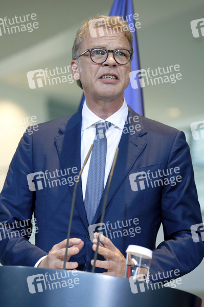 Christian Sewing bei der Pressekonferenz zur 'Made for Germany' Initiative im Bundeskanzleramt. Berlin, 21.07.2025