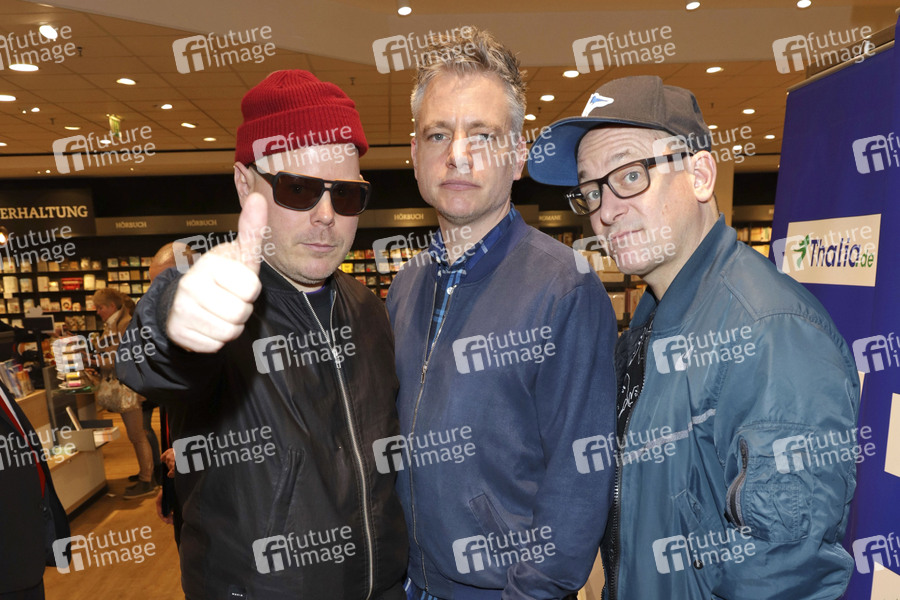 König Boris, Dokter Renz und Björn Beton von Fettes Brot bei einer Autogrammstunde zum Buch 'Was wollen wissen?' in der Buchhandlung Thalia in der Spitalerstrasse. Hamburg, 23.02.2019
