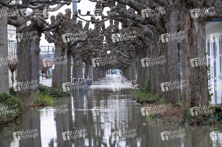 Das erste Jahreshochwasser am Rhein nahe des Pegelhöchstandes. Königswinter, 04.02.2021