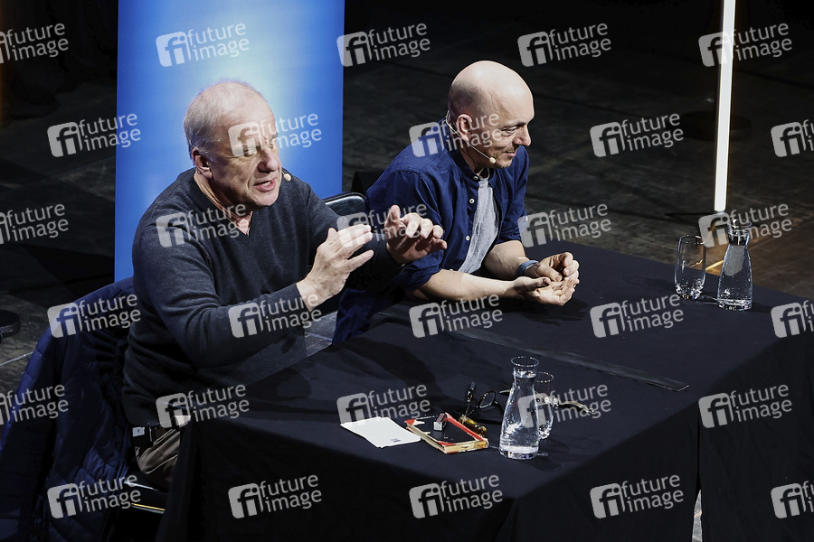 Hubertus Meyer-Burckhardt und Bernhard Hoecker bei der lit.Cologne 2024 Veranstaltung 'Denn sie wissen (noch) nicht, was sie tun' im E-Werk. Köln, 09.03.2024