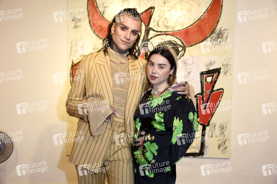 David Jakobs und Sandra Bulldock bei der Eröffnung der Alexander Höller Ausstellung 'F*CK THEM' in der Galerie Schmalfuss. Berlin, 19.08.2021