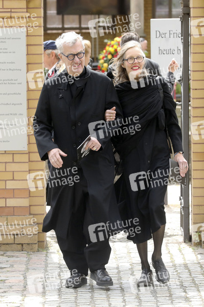 Wim Wenders mit Ehefrau Donata Wenders bei der Beisetzung der Holocaust-Überlebenden Margot Friedländer auf dem Jüdischen Friedhof in Berlin-Weißensee. Berlin, 15.05.2025