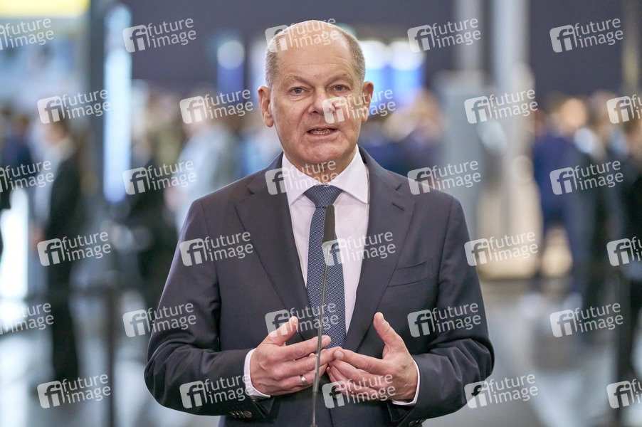 Olaf Scholz beim Eröffnungsrundgang auf der Hannover Messe 2025 auf dem Messegelände. Hannover, 31.03.2025
