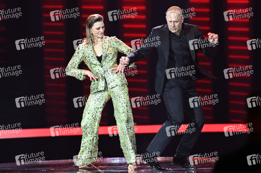 Svenja Jung und Heino Ferch in der ZDF-Unterhaltungsshow 'Wetten, dass..?' live aus der Messehalle. Nürnberg, 06.11.2021