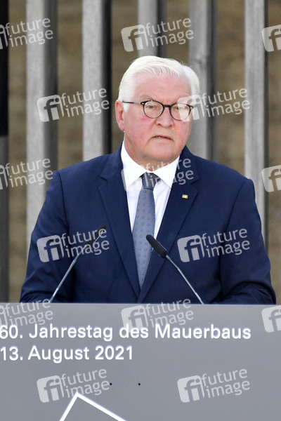 Frank-Walter Steinmeier bei der zentralen Gedenkveranstaltung zum 60. Jahrestag des Mauerbaus auf dem Vorplatz der Kapelle der Versöhnung an der Gedenkstätte Berliner Mauer an der Bernauer Straße. Berlin, 13.08.2021
