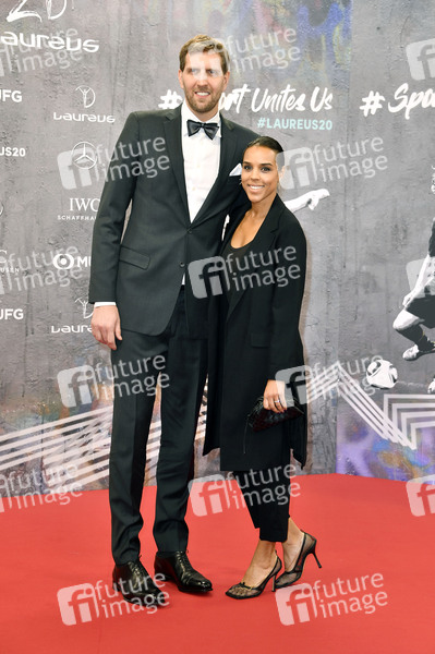 Dirk Nowitzki mit Ehefrau Jessica Olsson bei der Verleihung der Laureus Sport for Good Awards 2020 in der Verti Music Hall. Berlin, 17.02.2020