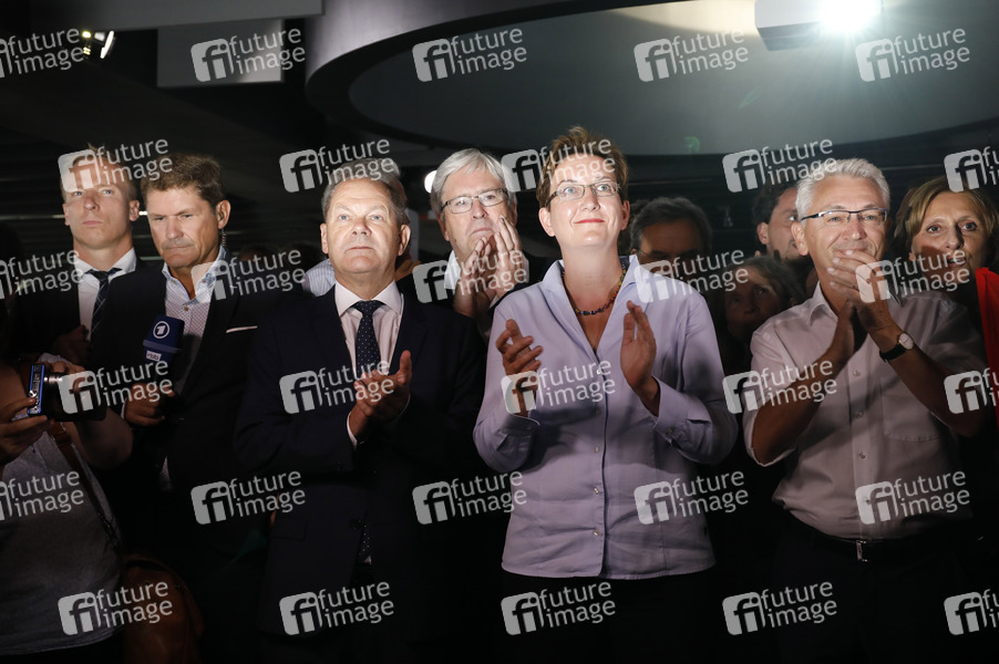 Olaf Scholz und Klara Geywitz bei der Wahlparty der SPD nach der Landtagswahl in Brandenburg im Bildungsforum Potsdam. Potsdam, 01.09.2019