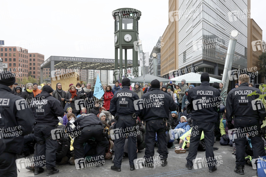 Aktivisten der Klimabewegung 'Extinction Rebellion' blockieren den Potsdamer Platz. Berlin, 08.10.2019