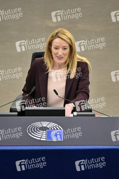 Krieg, Russland, Ukraine, Flucht, Hilfe. Flücthlinge, Europäisches Parlament, Plenum, Plenartagung, Plenardebatte, Plenarsitzung, Debatte, Rede, Politik, Strasbourg, Strassburg, Europaparlament, Europa-Politik, EU-Abgeordnete, EU-Parlament, EP, Parlament der Europäischen Union, European Parliament, European Union, Parlamentum Europaeum, MdEP, Mitglied des Europäischen Parlaments, Politikerin, Malta, Partit Nazzjonalista, EU-Parlamentspräsidentin, Präsidentin des EU-Parlaments