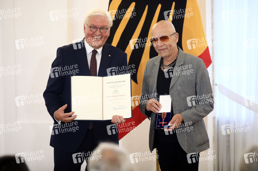 Frank-Walter Steinmeier und Toni Krahl bei der Verleihung des Verdienstkreuzes am Bande der Bundesrepublik Deutschland an Toni Krahl im Schloss Bellevue. Berlin, 01.10.2024