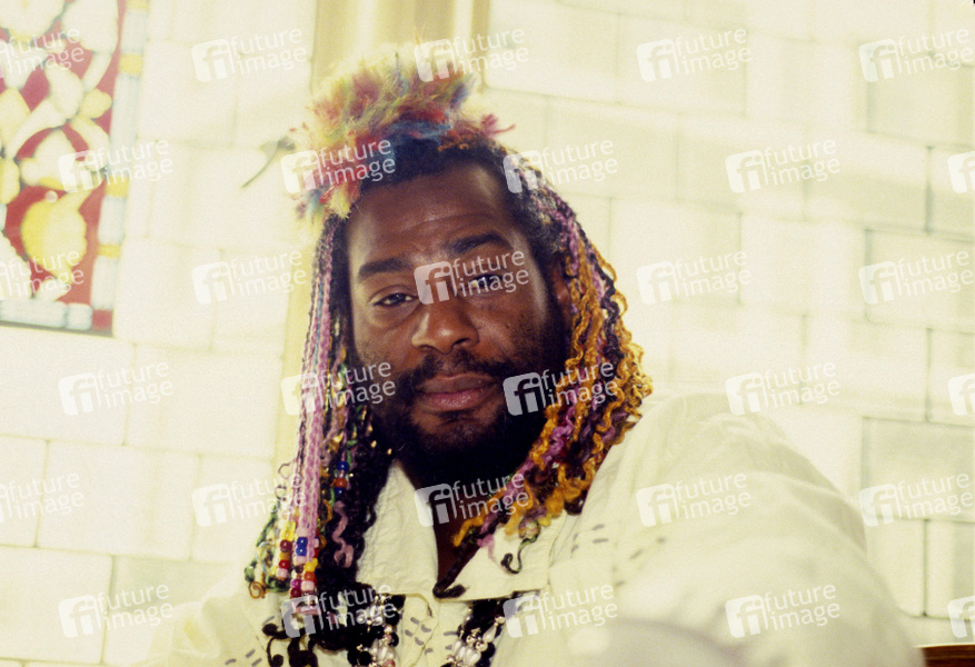 George Clinton von Dolby's Cube bei einem Pressetermin im Belfry Club. London, 04.07.1985