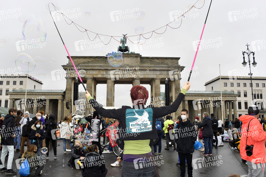 Klimaaktivist*innen beim globalen Klimastreik von Fridays for Future am Brandenburger Tor. Berlin, 25.09.2020
