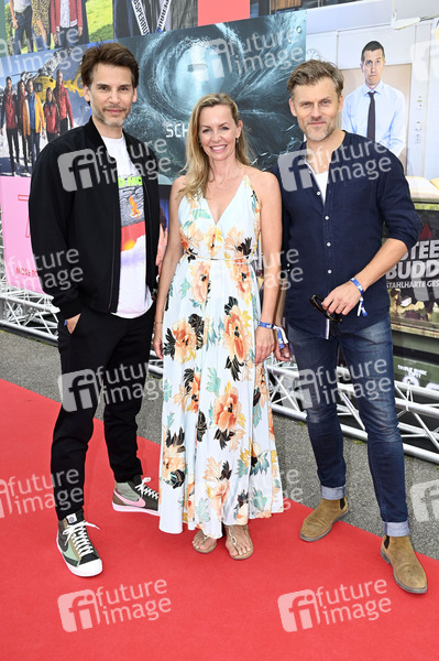 Florian Odendahl, Simone Hanselmann und Jens Atzorn bei der '75 Jahre ndF: More To Come' Film Party auf der Trabrennbahn Daglfing. München, 29.06.2022