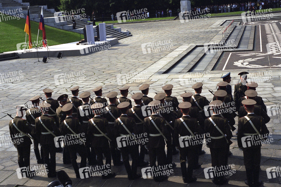 Russische Soldaten anlässlich der Militärparade zur Verabschiedung der russischen Streitkräfte aus Deutschland am sowjetischen Ehrenmal in Berlin-Treptow. Berlin, 31.08.1994