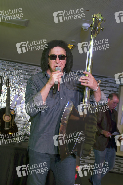 Gene Simmons von Kiss übergibt dem Hard Rock Cafe eine signierte Gitrarre. Berlin, 12.06.2013