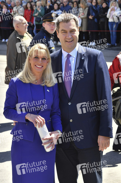 Markus Söder mit Ehefrau Karin Söder bei der Begrüßung der britischen Royals auf dem Max-Joseph-Platz vor der Residenz München. München, 09.05.2019