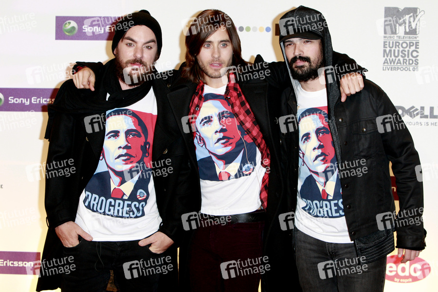 Shannon Leto, Jared Leto und Tomo Milisevic von Thirty Seconds to Mars bei der Verleihung der MTV Europe Music Awards 2008 in der Echo Arena. Liverpool, 06.11.2008