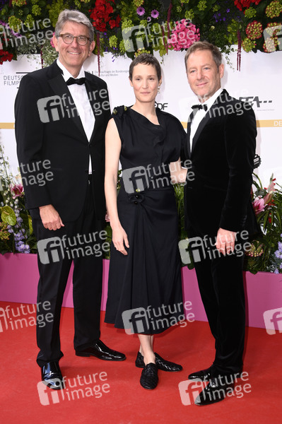 Wolfram Weimer, Vicky Krieps und Florian Gallenberger bei der 75. Verleihung des Deutschen Filmpreises 2025 im Theater am Potsdamer Platz. Berlin, 09.05.2025