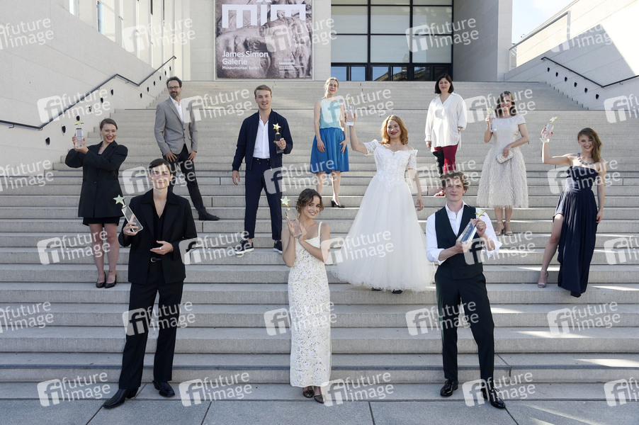 Zygimante Elena Jakstaite, Gustav Lindh, Carlo Chatrian, Albrecht Schuch, Alba Baptista, Mariette Rissenbeek, Seidi Haarla, Cassandra Han, Martijn Lakemeier, Natasa Stork und Sara Klimoska beim Photocall mit den European Shooting Stars 2021 auf der Berlinale Summer Special 2021 / 71. Internationale Filmfestspiele Berlin auf der James Simon Treppe vor der James-Simon-Galerie. Berlin, 14.06.2021