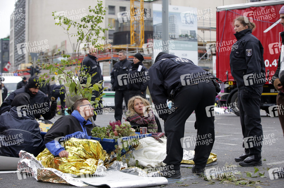 Aktivisten der Klimabewegung 'Extinction Rebellion' blockieren den Potsdamer Platz. Berlin, 08.10.2019