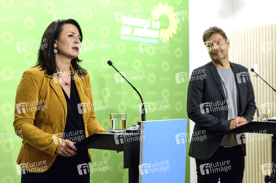 Anja Siegesmund und Robert Habeck bei einer Pressekonferenz anlässlich der bevorstehenden Landtagswahl in Thüringen in der Parteizentrale. Berlin, 14.10.2019