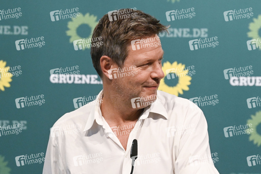Robert Habeck bei einer Pressekonferenz nach Beratungen des Parteirats Bündnis 90/Die Grünen zum Umgang mit dem Parteimitglied Boris Palmer (Oberbürgermeister Tübingen) in der Heinrich-Böll-Stiftung. Berlin, 14.06.2021